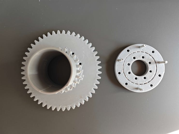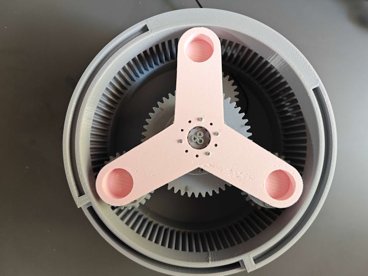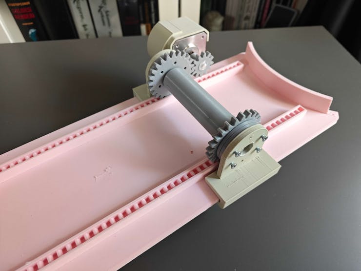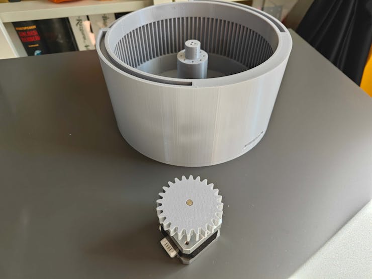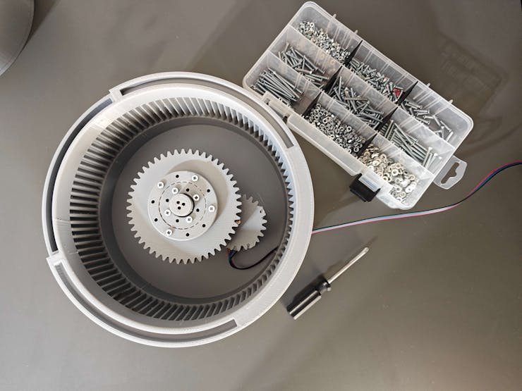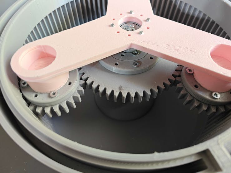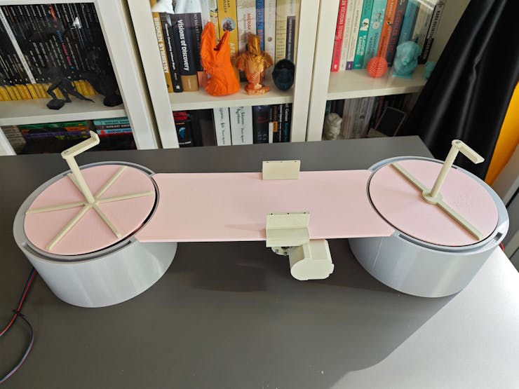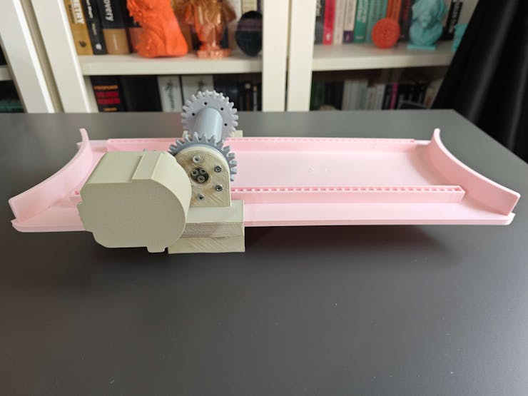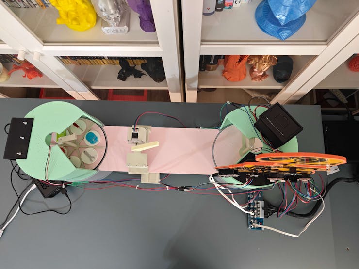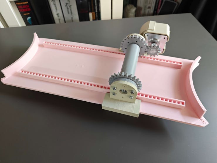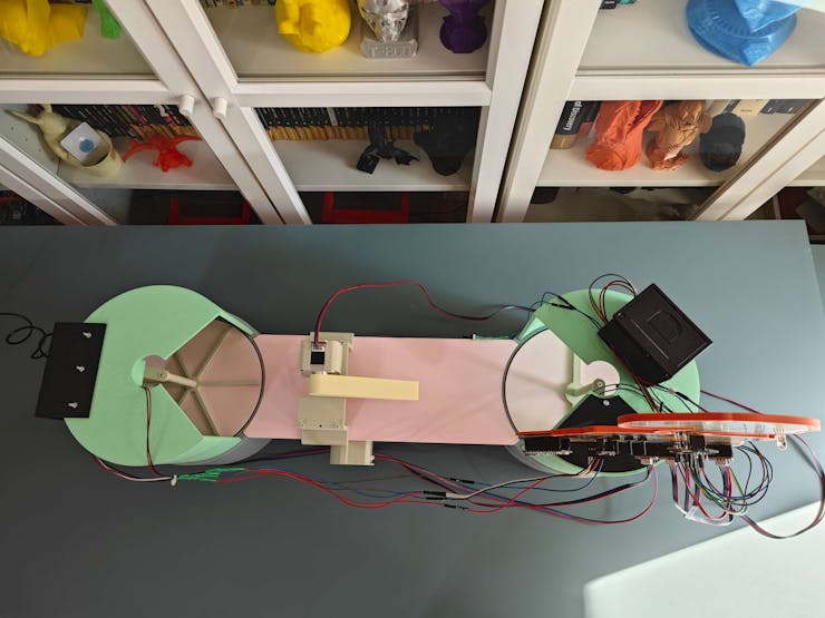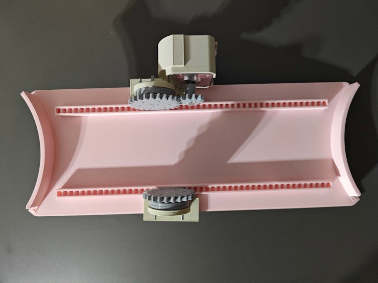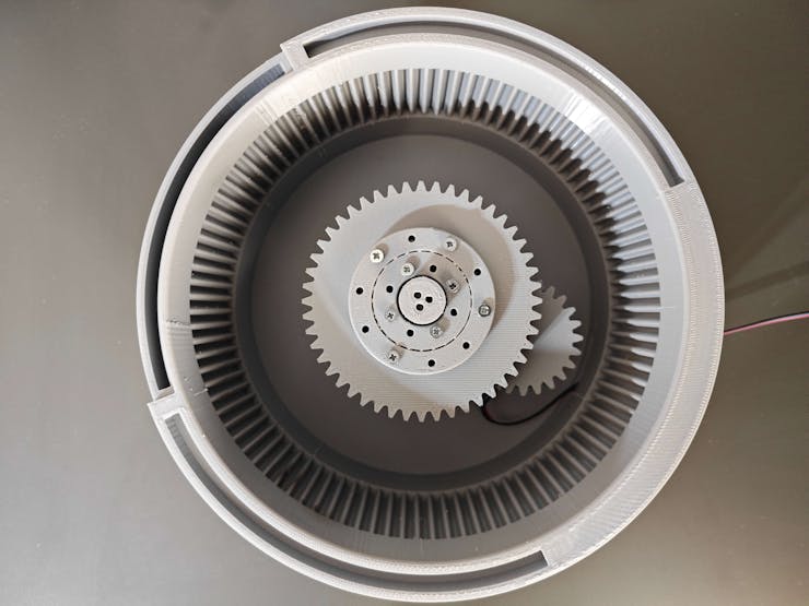 After testing electronic components and completing the PCB layout, I designed a plethora of 3D parts on Autodesk Fusion 360, including but not limited to custom bearings optimized for 5 mm steel balls, planetary gear mechanisms, and separated rotating platforms. After finalizing the required mechanical 3D parts, I exported the virtual shipping workstation as a single file in the OBJ format to produce an accurate virtual representation of the shipping workstation.