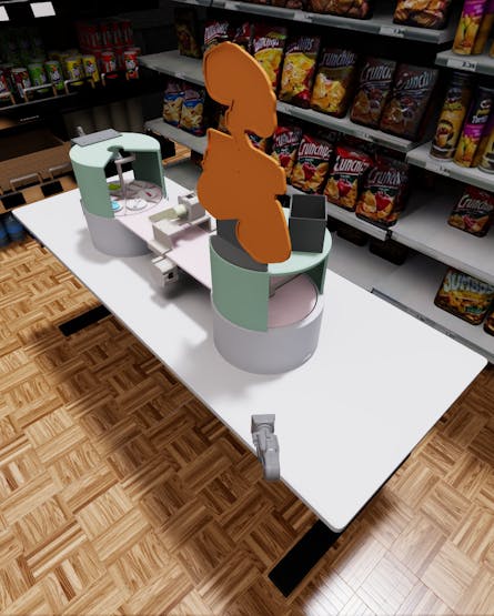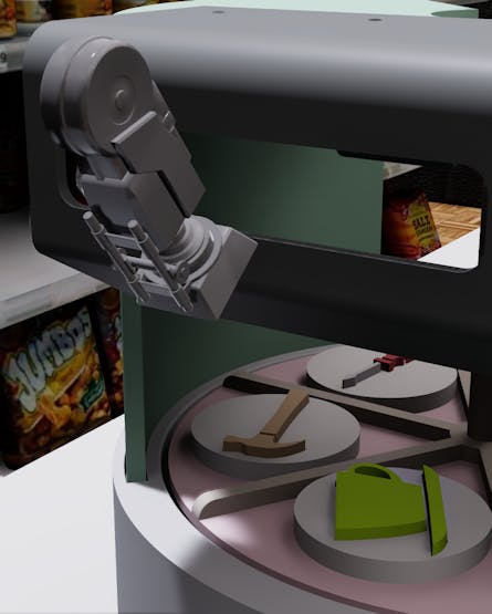 - Finally, swivel the second platform by 180 degrees to present the retrieved product.