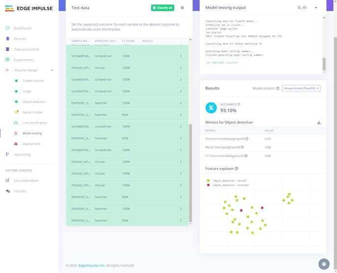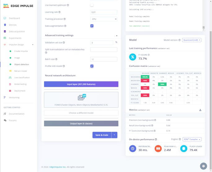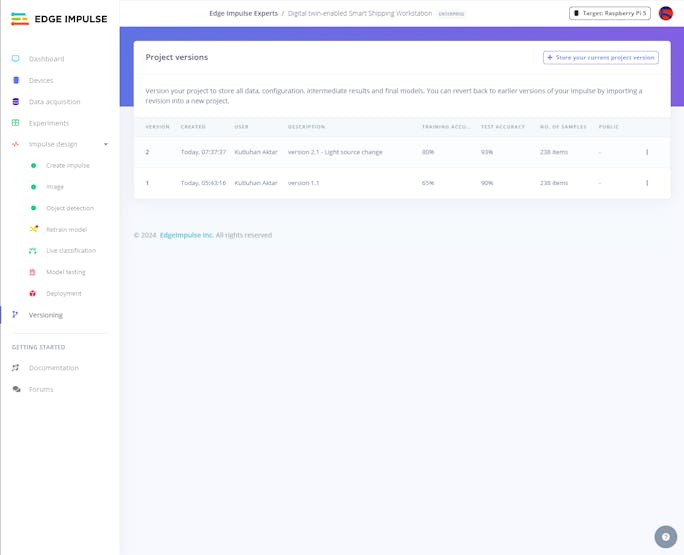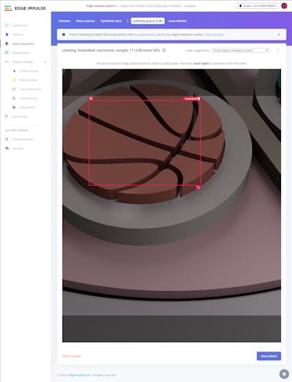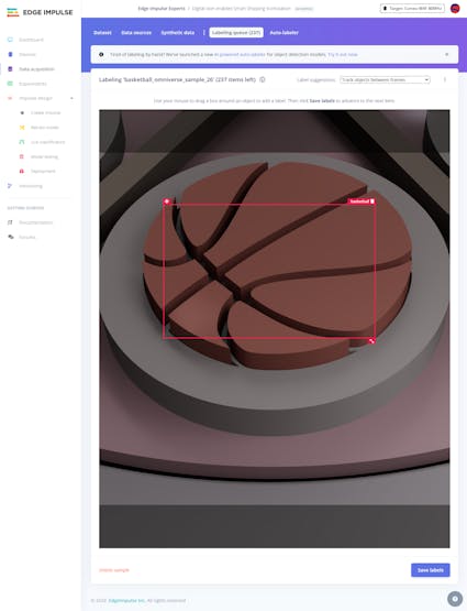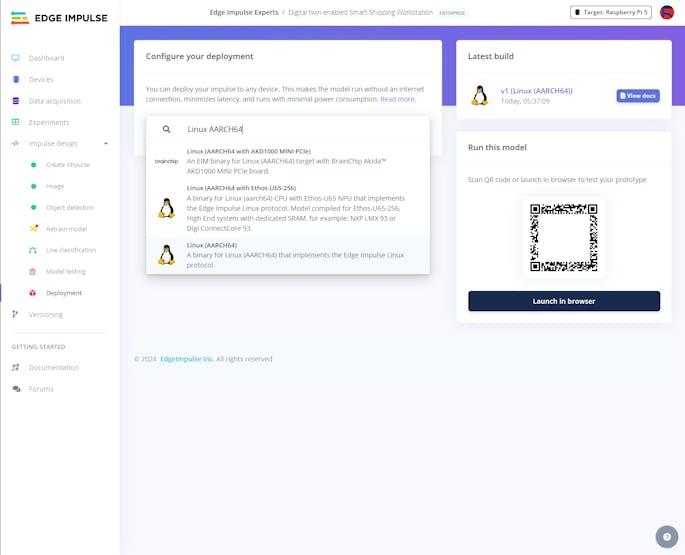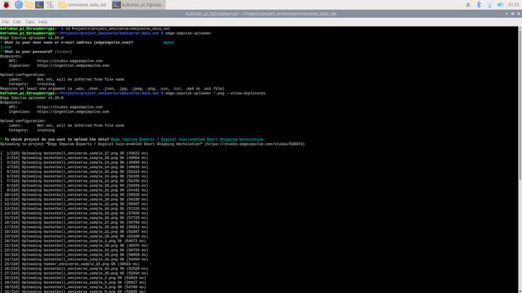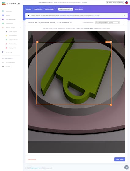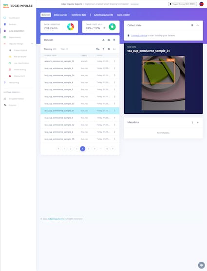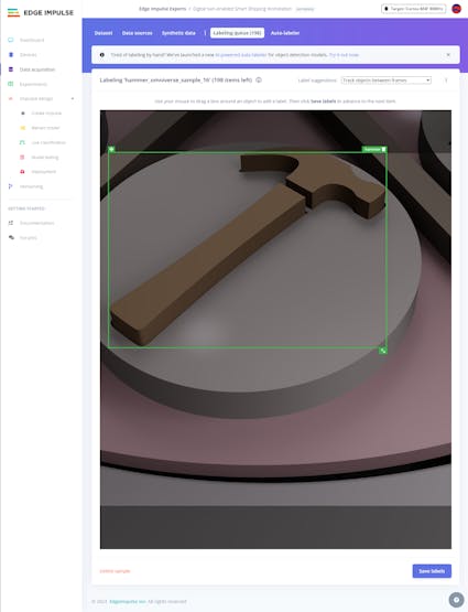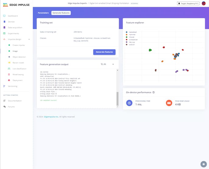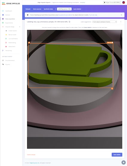 After employing built-in NVIDIA Omniverse features to construct my synthetic data set of customized sample products as instantiated by the shipping workstation digital twin, I uploaded the collected samples to Edge Impulse to train an advanced object detection model (FOMO) with synthetic product images. After validating and testing my FOMO model, I deployed it as a Linux (AARCH64) application (.eim) compatible with Raspberry Pi 5.