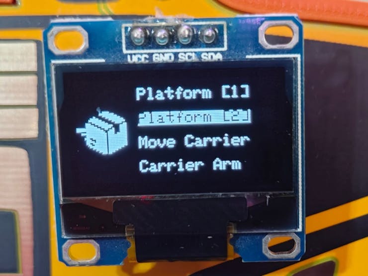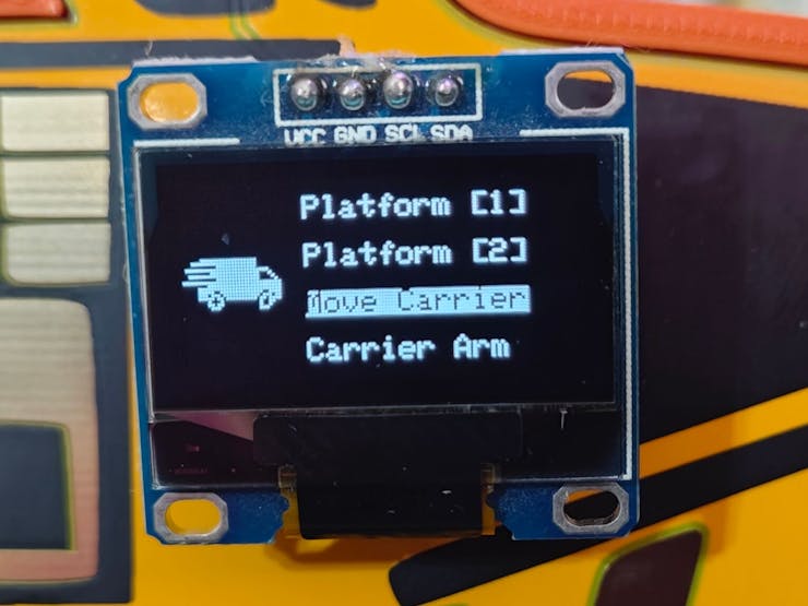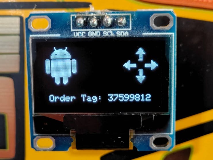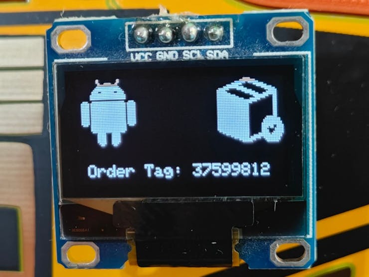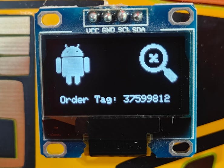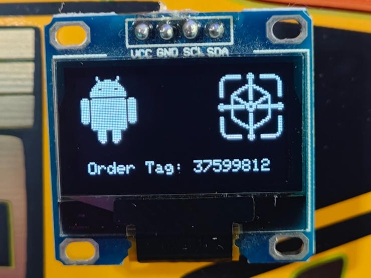 🚚📦📲 The workstation control panel notifies the user via the SSD1306 screen when the order confirmation process starts.