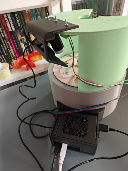 - Swivel the first platform by 60 degrees to bring the succeeding sample product under the USB webcam.