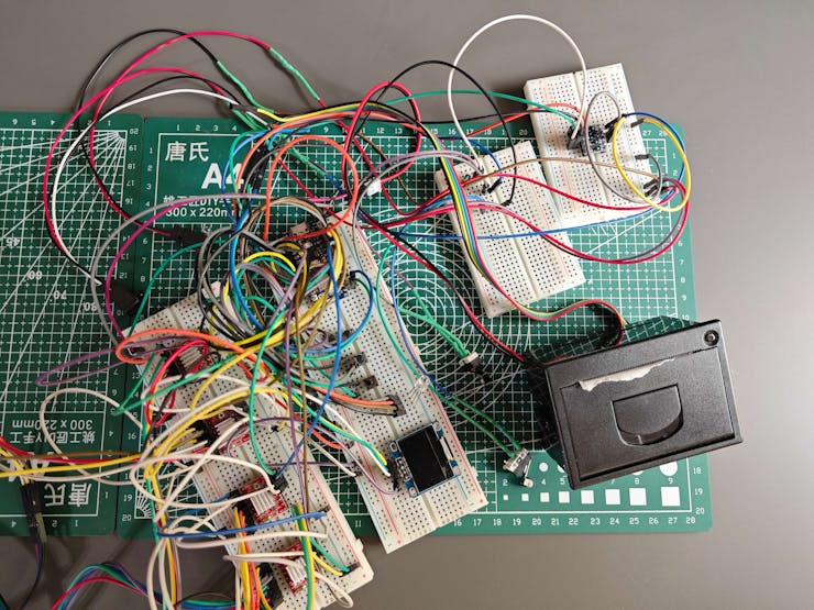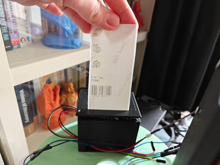 #️⃣ As a practical shipping workstation feature, I decided to connect a tiny (embedded) thermal printer to Nano Matter to print a shipping receipt for each completed order. I utilized a sticker paper roll to make receipts fastenable to cardboard boxes.