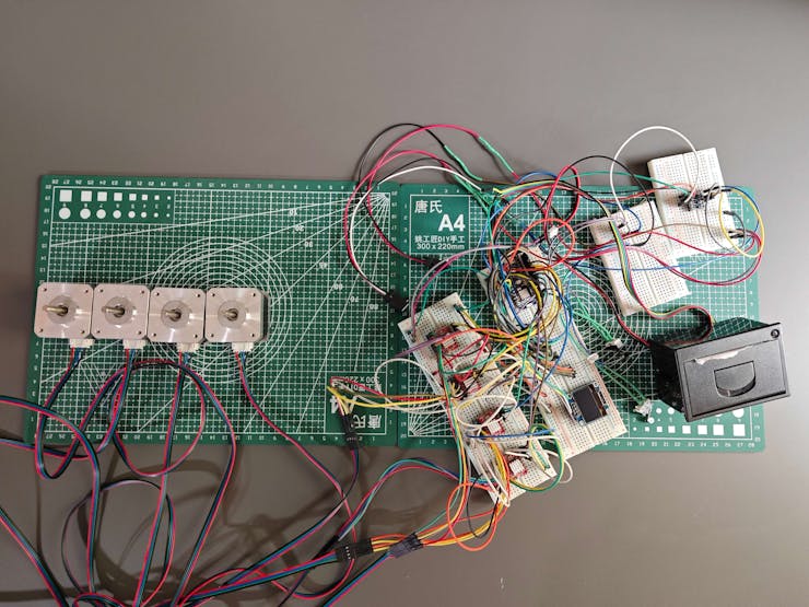 Before proceeding with designing 3D parts, I needed to determine all electrical components required to operate the real-world shipping workstation. Thus, I started to test and prepare electronic components for prototyping the device structure.