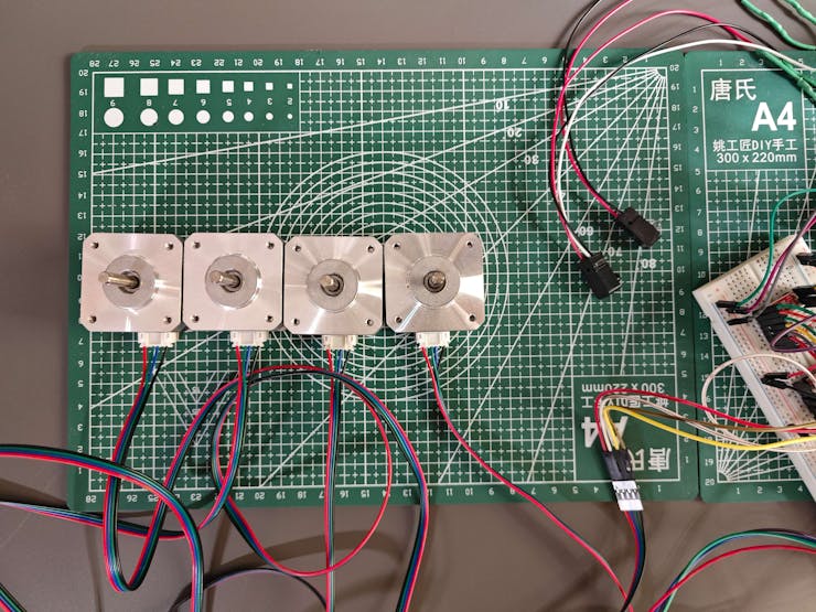 #️⃣ Since I planned to design intricate gear mechanisms to control the moving parts of the real-world shipping workstation, I decided to utilize four efficient and powerful Nema 17 (17HS3401) stepper motors, similar to most FDM 3D printers. To connect the Nema 17 stepper motors to Nano Matter securely, I employed four A4988 driver modules.