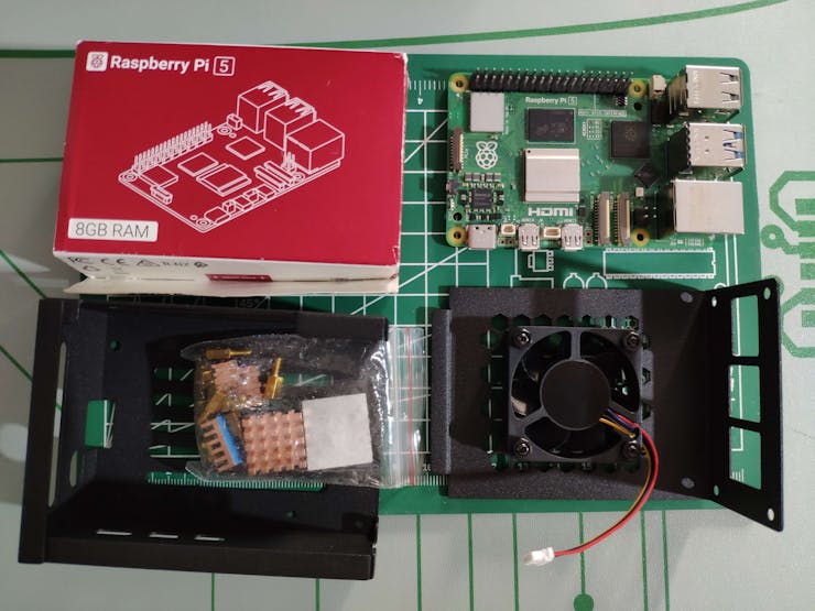 #️⃣ Furthermore, I put Raspberry Pi 5 into its aluminum case providing a cooling fan to secure all cable connections.