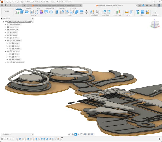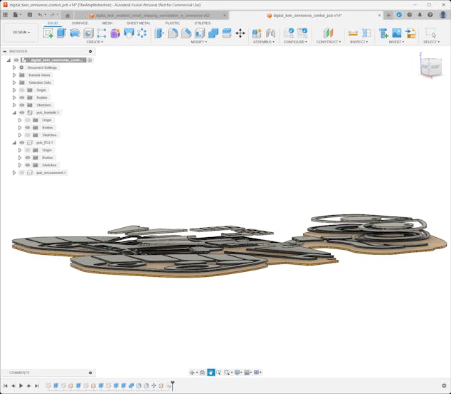 To simplify the PCB integration and place electronic components precisely while designing complementary 3D parts, I created the Wall-E PCB outline and a snug-fit PCB encasement on Autodesk Fusion 360.