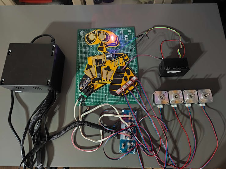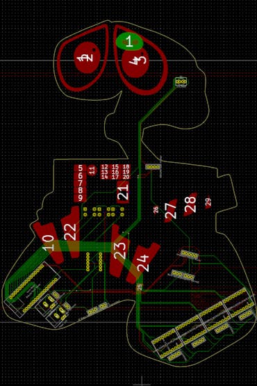 As I was prototyping the device structure and conceptualizing the workstation features, I pondered the question of how I should design a unique PCB for a smart shipping workstation. Then, I remembered the perennial efforts of Wall-E to move and arrange garbage as small packages. Thus, I drew my inspiration from Wall-E while designing this PCB, running an automated package-moving operation :)
