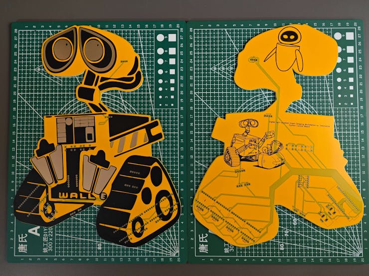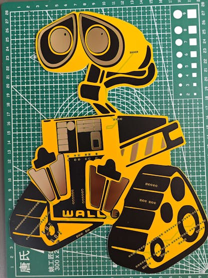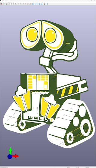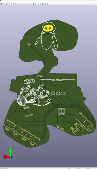 Then, I imported my outline graphic to Kicad 8.0 in the DXF format and designed the Wall-E PCB layout and silkscreen graphics according to the prototype electronic component connections.