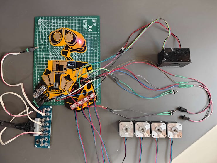 After concluding soldering components to the Wall-E PCB, I tested whether the PCB worked as expected or was susceptible to electrical issues; I did not encounter any problems.