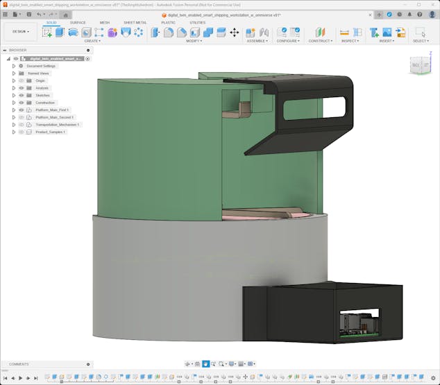 I designed all shipping workstation 3D parts on Autodesk Fusion 360, including custom mechanical parts for moving components.