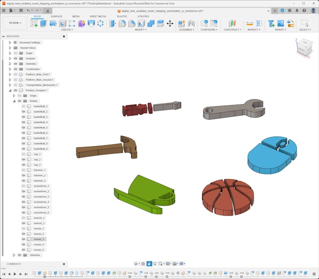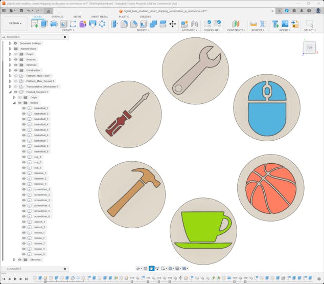 As I was conceptualizing this proof-of-concept project, I inspected various industrial settings with which I could show the benefits of reversing the digital twin implementation. Since product transportation and shipping operations require complex industrial mechanisms to achieve accuracy and reliability while maintaining a time-sensitive workflow, I decided to apply my reverse digital twin approach to design a virtual shipping workstation, construct a synthetic data set of customized sample products, and train a precise object detection model to accomplish building a production-ready product transportation mechanism. In accordance with my approach, I designed all sample products from scratch to emphasize the strengths of a full-fledged digital twin, providing the opportunity to train an object detection model for products waiting to be manufactured.