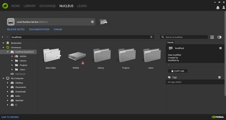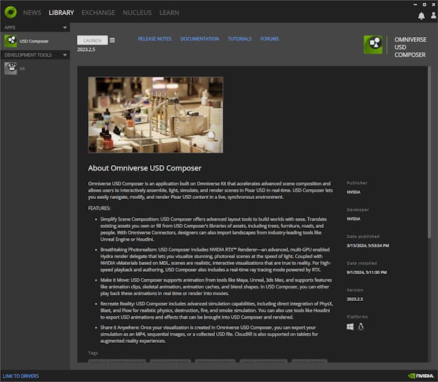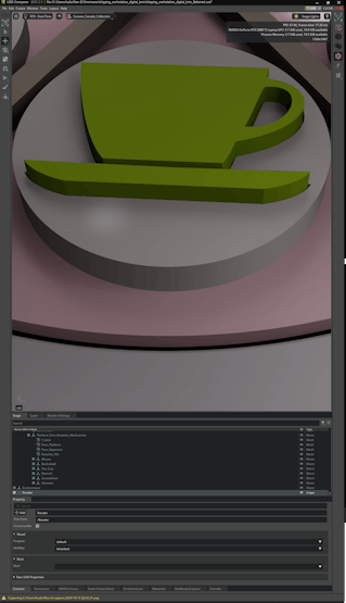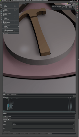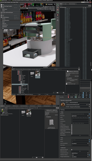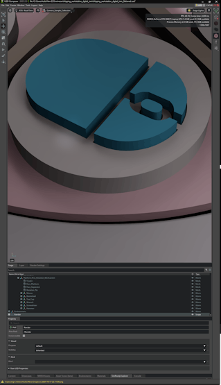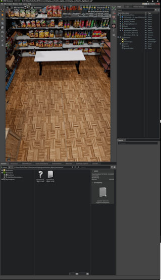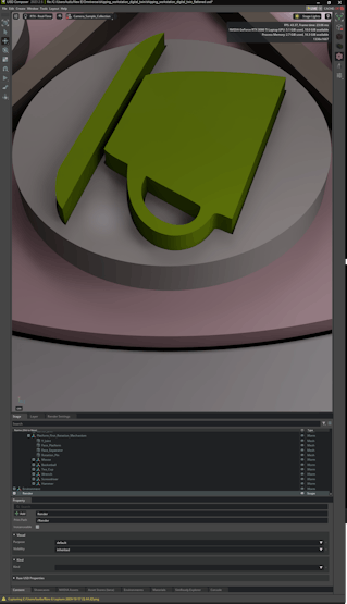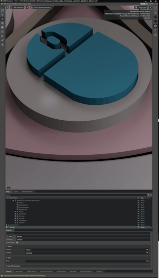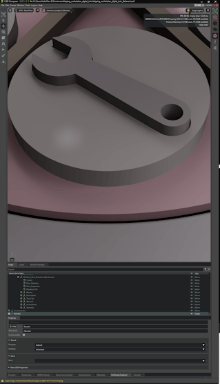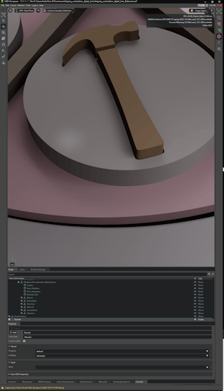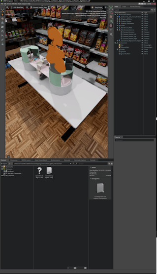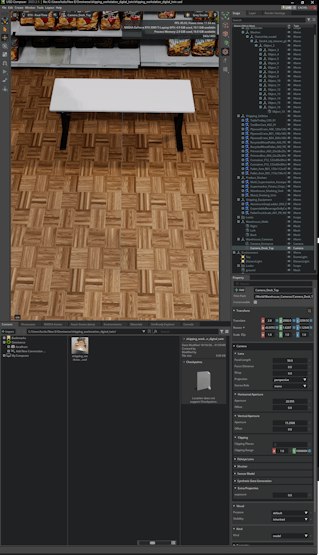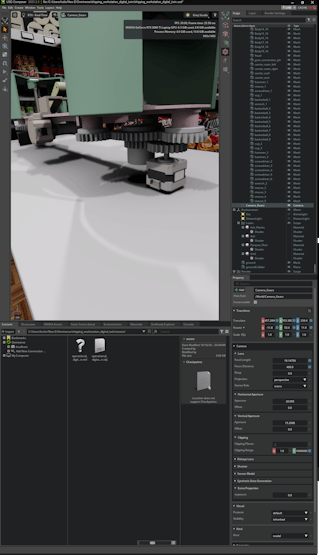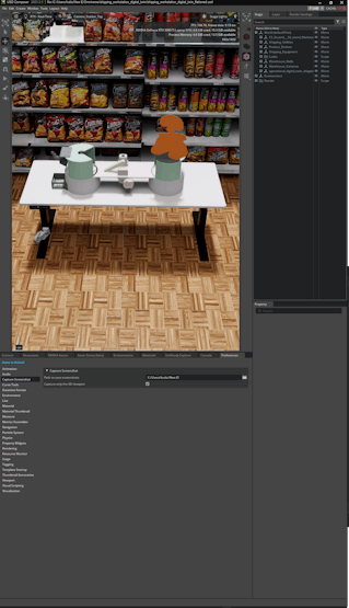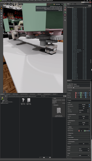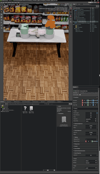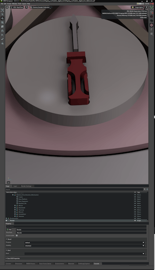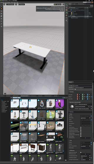 Then, I imported the virtual shipping workstation into the NVIDIA Omniverse USD Composer, which allows users to assemble, light, simulate, and render large-scale scenes for world-building. To generate a realistic scenery for shipping operations, I utilized some free 3D models provided by Omniverse and designed some additional assets. After completing my shipping warehouse scenery, I experimented with camera, material, and lighting configurations to render the virtual shipping workstation with exceptional quality and produce a precise digital twin.