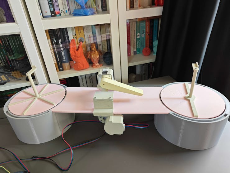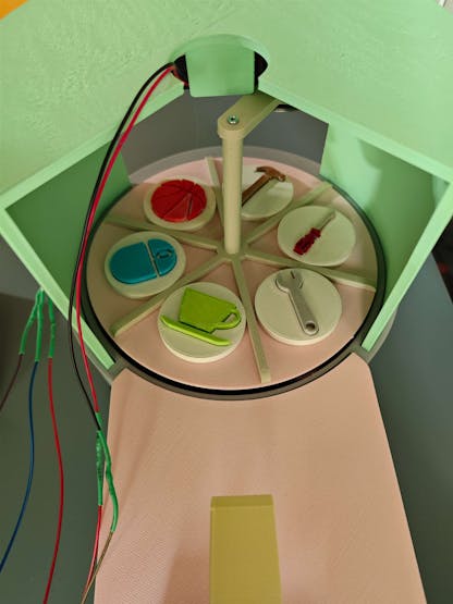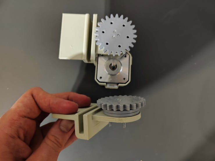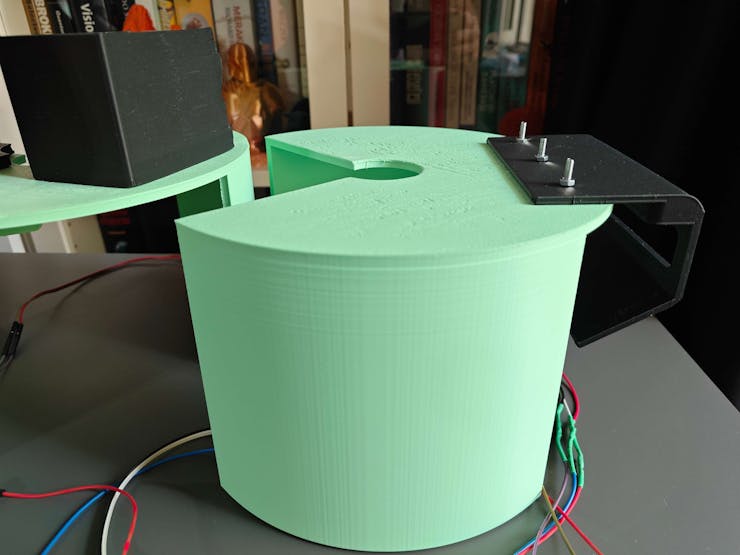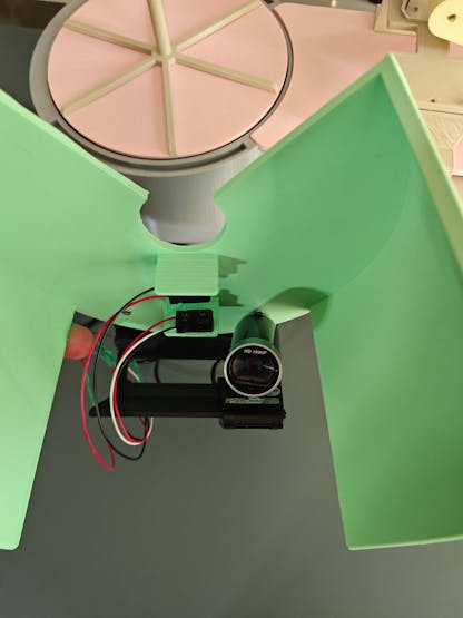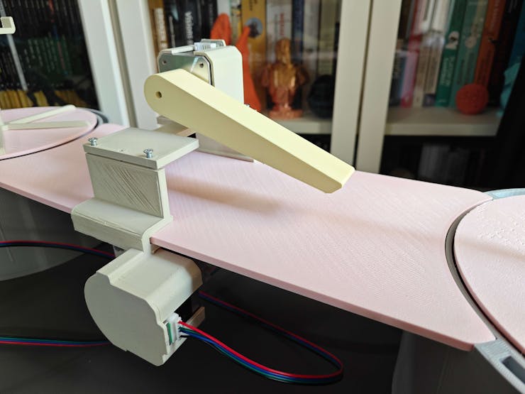 🚚📦📲 The first rotating platform utilizes the IR break-beam sensor to synchronize the 200-step per rotation pattern for 60° turns via its specified rotation pin.