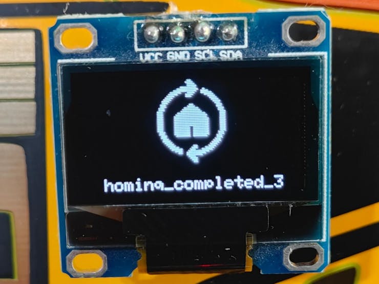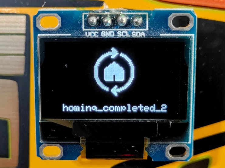 🚚📦📲 The workstation control panel turns the RGB LED to green while performing the homing sequence and notifies the user of the sequence progress on the SSD1306 display.