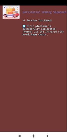 🚚📦📲 If the user activates the automated homing sequence, the mobile application communicates with the workstation control panel to initiate the sequence in accordance with the selected homing methods: