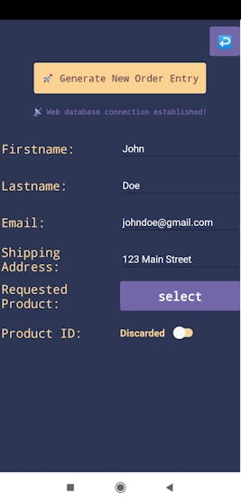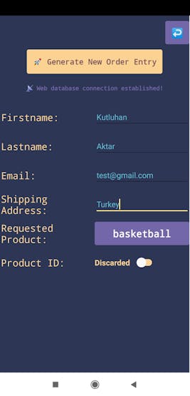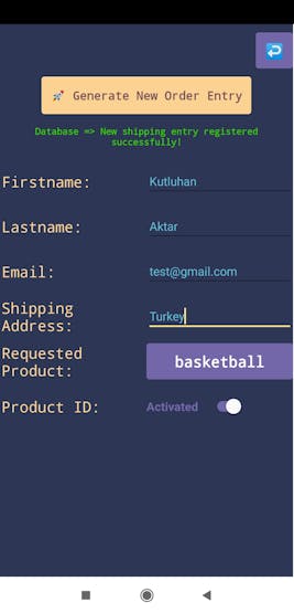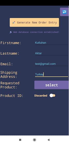 🚚📦📲 In this regard, the mobile application enables the user to select one of the available products and transfer order information to the web application.