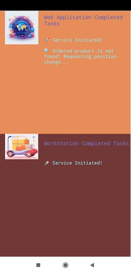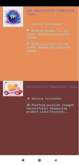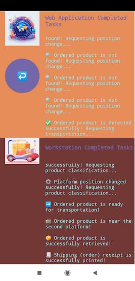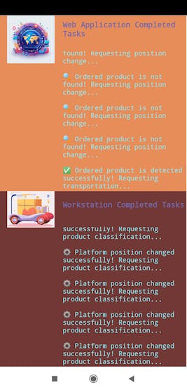 🚚📦📲 Since the mobile application exchanges data packets with the web application and the workstation control panel continuously and simultaneously as the order confirmation process continues, the mobile application informs the user of each completed task performed by the web application and the control panel via their dedicated terminals.