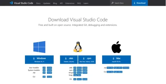 Search for Visual Studio Code download on Google or enter the https://code.visualstudio.com/download, select the version compatible with your computer system and download Visual Studio Code installer. In this instructions we are selecting Windows.