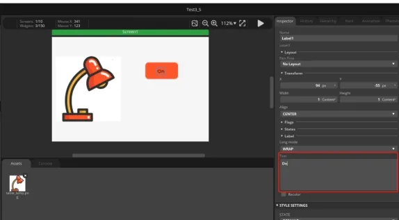 Click the second button ON to change the text content to Off. Used to achieve the effect of turning off lights.