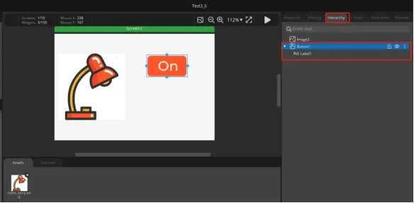 ④Hierarchy area, it will show every widget used in each screen.
