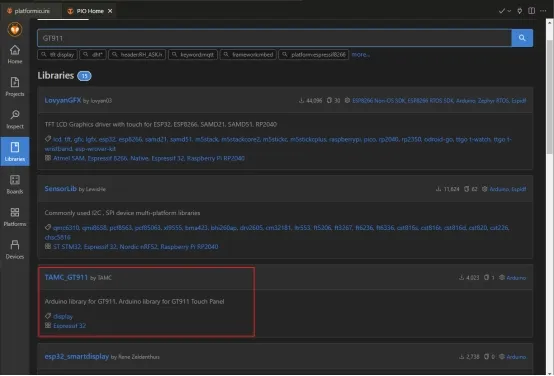 Click the PlatformIO icon, click ‘Libraries’, then search for the following libraries.