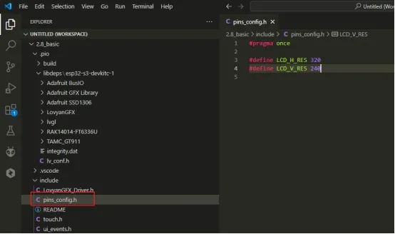 Similarly, add the display driver and pin definition header files to the include folder.