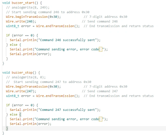 - You can also send command 246 to control the buzzer to turn on, and send command 247 to control the buzzer to turn off.