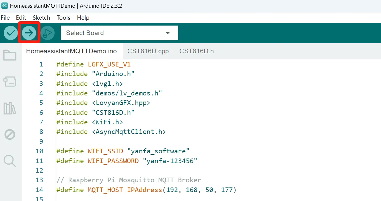 2. Enter the "HomeassistantMQTTDemo" folder and open HomeassistantMQTTDemo.ino