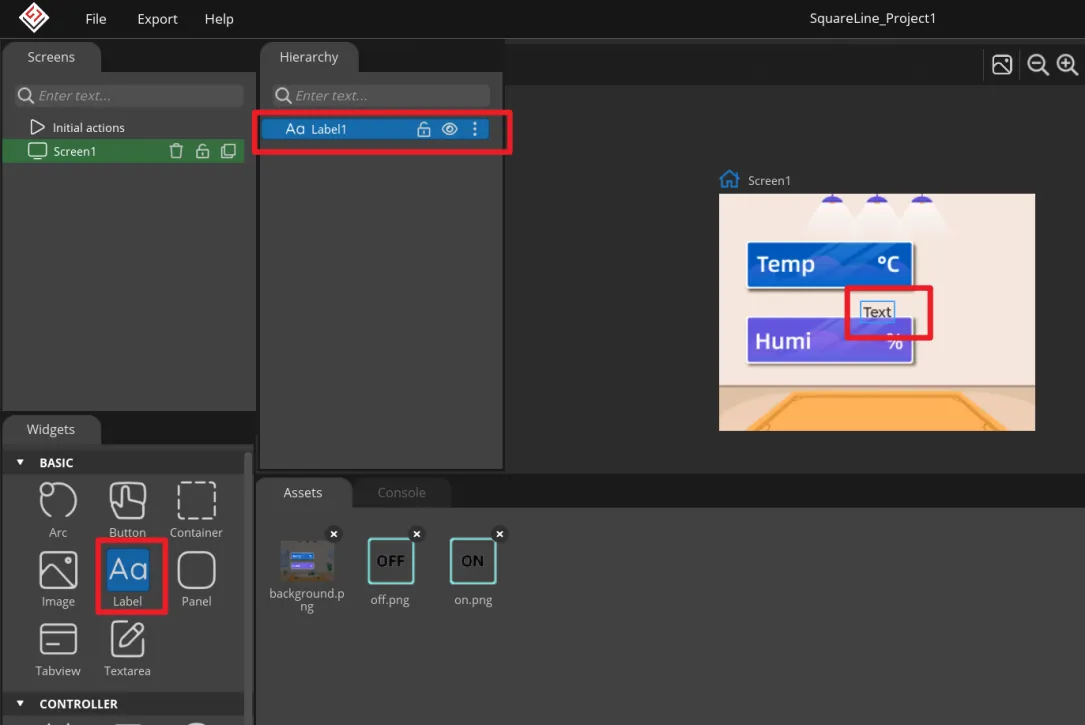 Add a Label2 to display the humidity value in the same way. You can also directly right-click the Label1 to duplicate it.