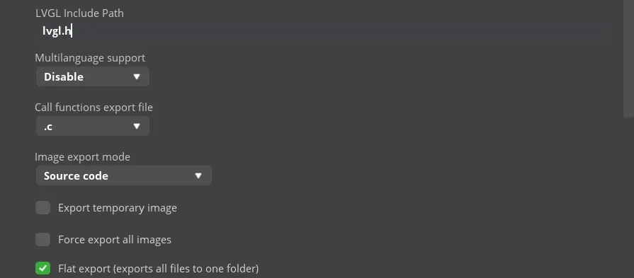 Tips: After selecting the flat export, the output files will be in the same folder, so that the output code does not need to modify the path in the program. If not, the output files will be classified and placed in different folders. The compiler may not be able to recognize different paths, which will cause some trouble. In this case, the user needs to modify it manually, so it is recommended to select all files to be output to the same folder.