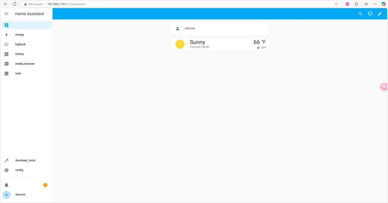 This will bring you to the main interface of Home Assistant.