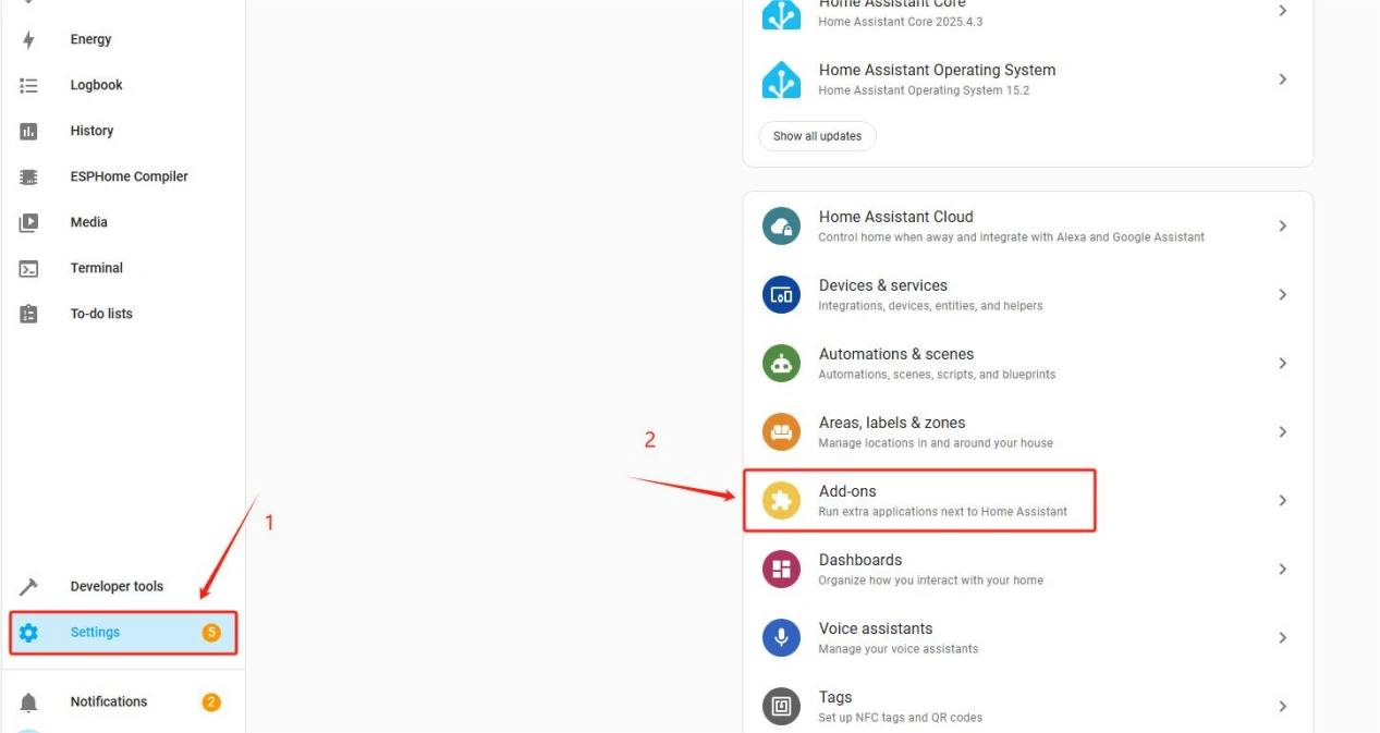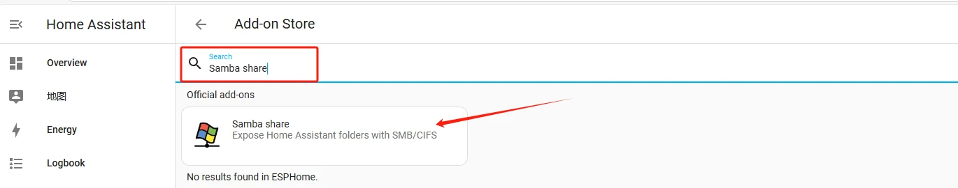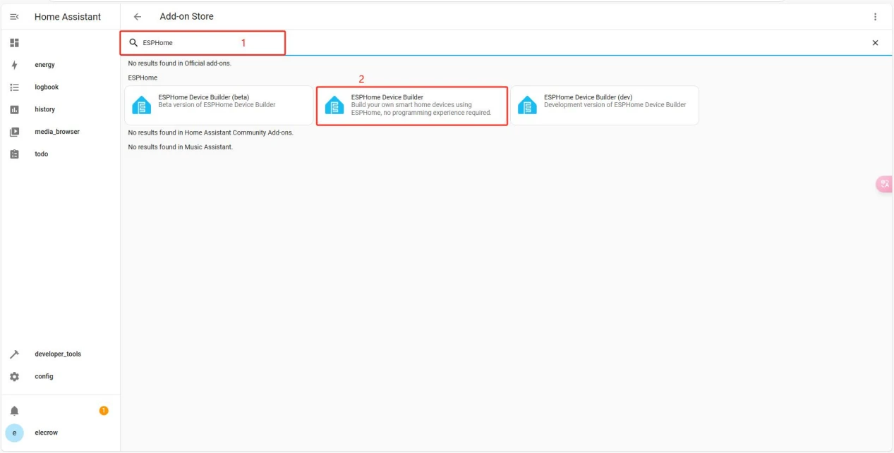 Click on "ADD-ON STORE" and type ESPHome to install it.