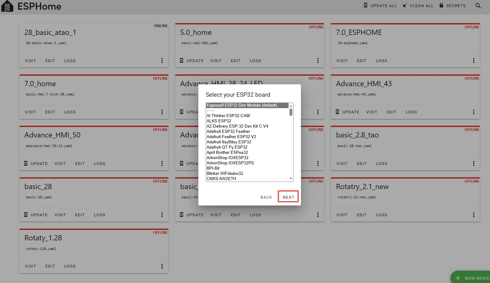 Then select esphome