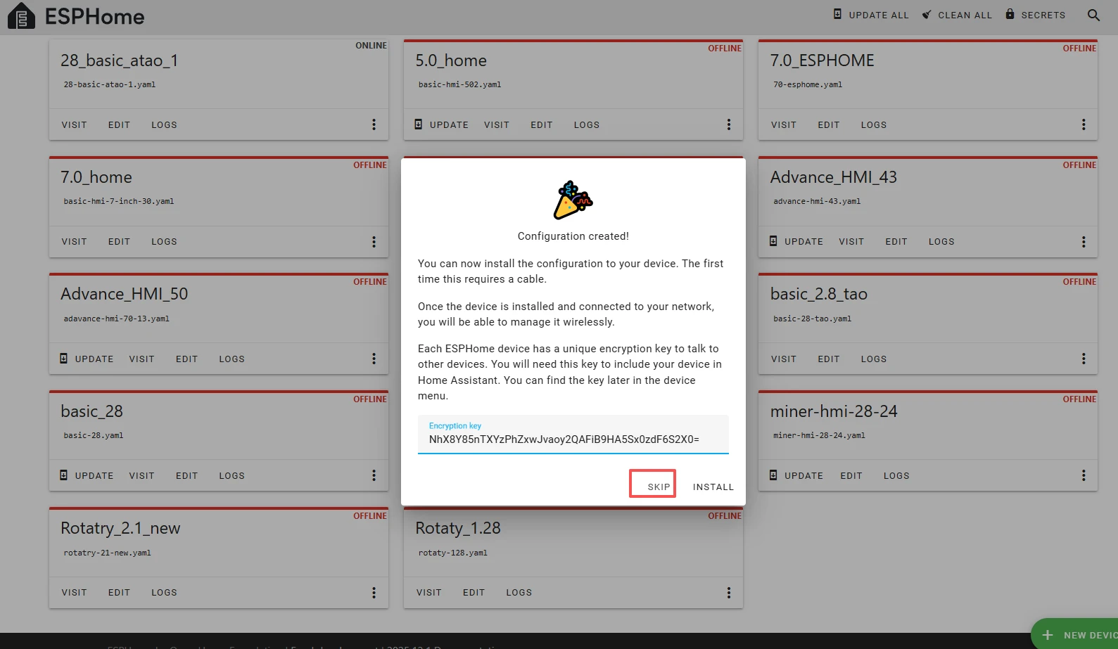 Here, click "SKIP".