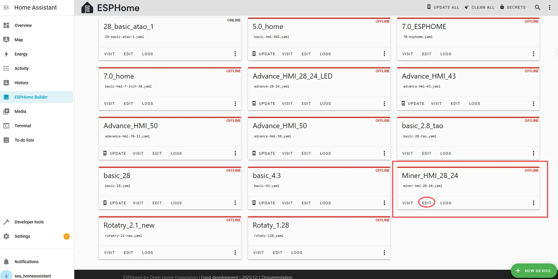 Reminder: The version of ESPHome we are using is 2025.11.3.