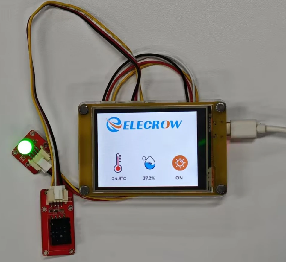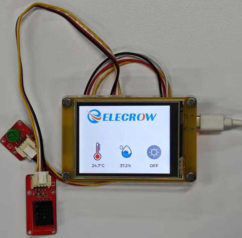 This class mainly collects temperature and humidity by using the DHT20 temperature and humidity sensor and LED lights on the Crowpanel ESP32 Miner HMI Display, and can also remotely control the on and off of the bulb.