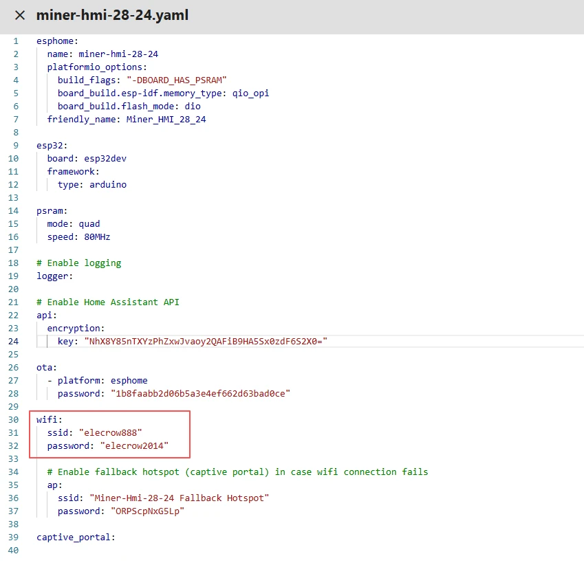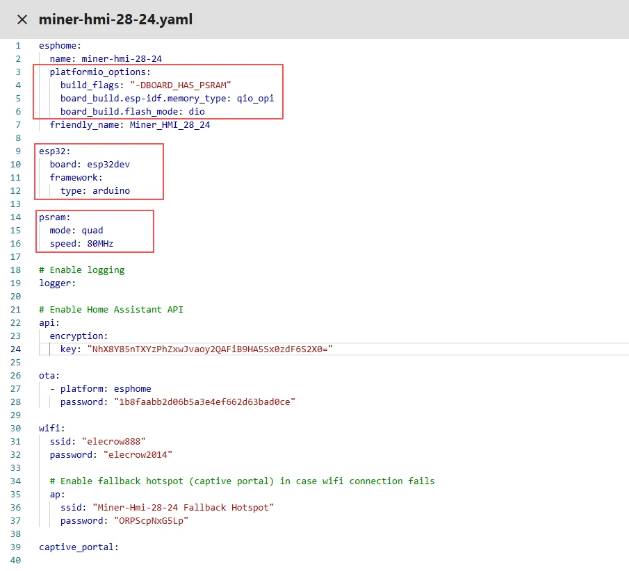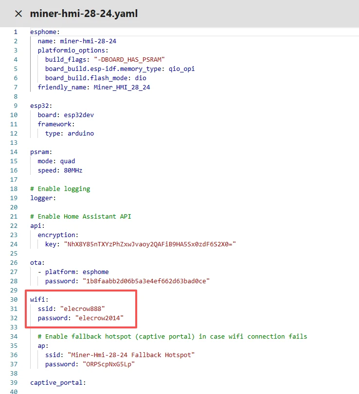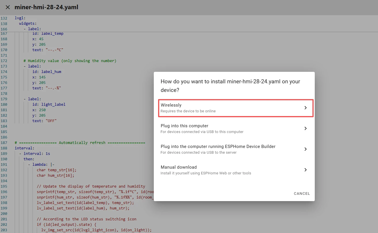 This tutorial will show you how to add theCrowpanel ESP32 Miner HMI Displayto ESPHome。