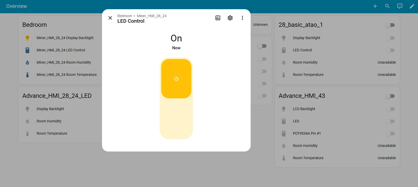 Click on it, and you'll be able to successfully control the light bulb connected to the Crowpanel ESP32 Miner HMI Display.