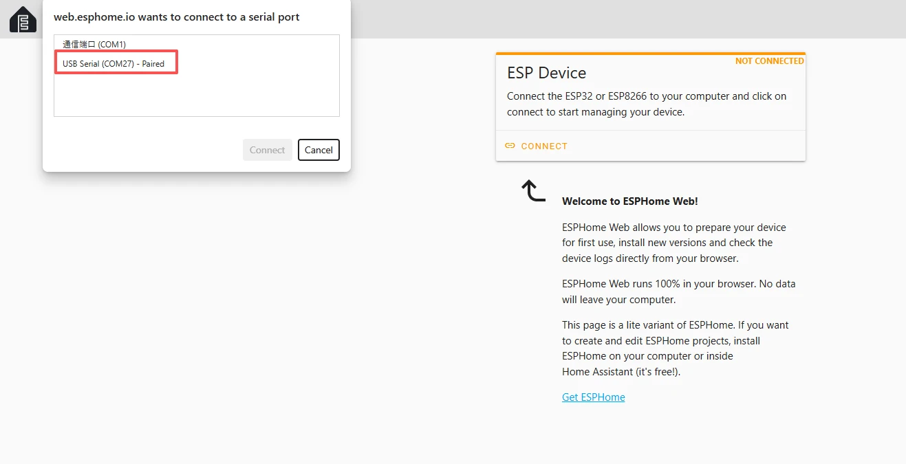 Open the following website:https://web.esphome.io/?dashboard_wizard