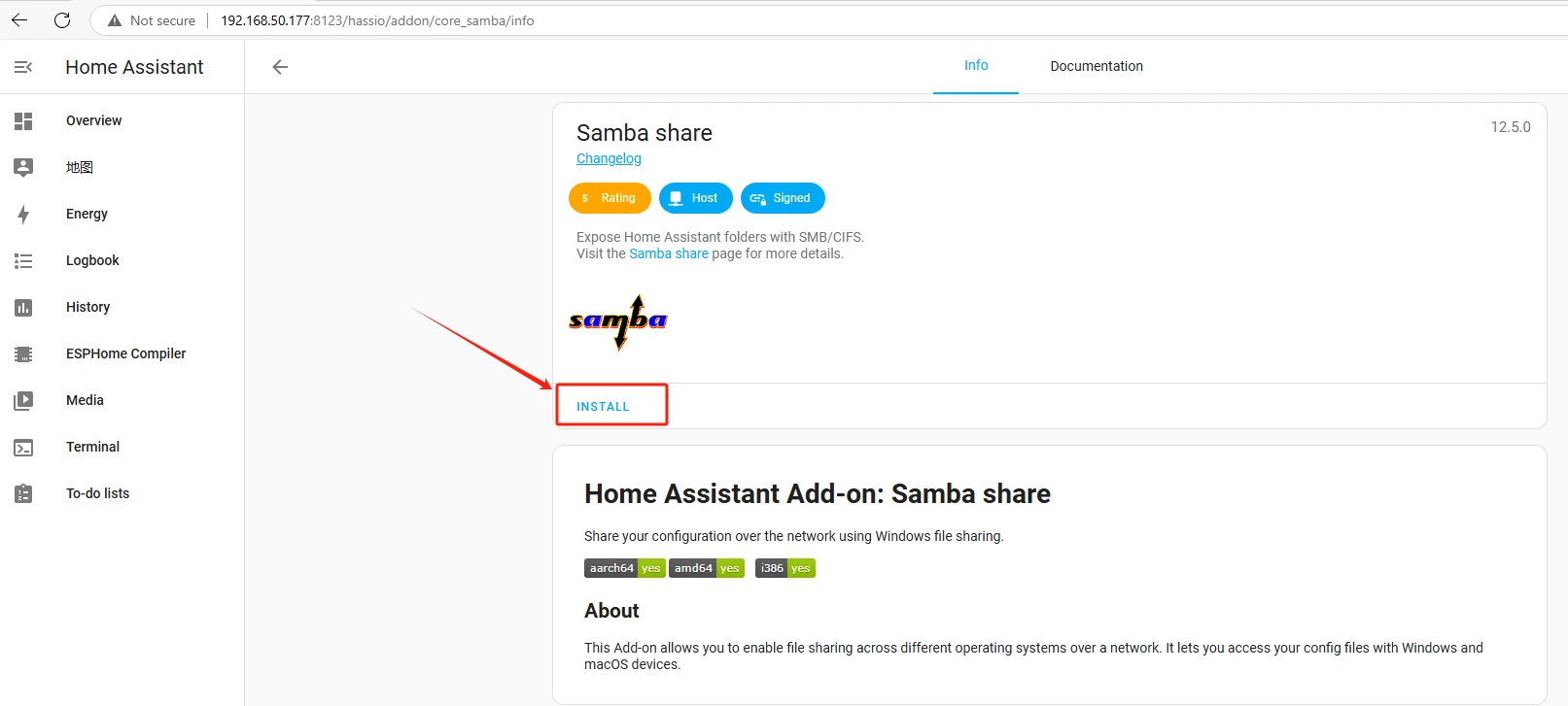 So I enter 192.168.50.11:8123 in the browser.