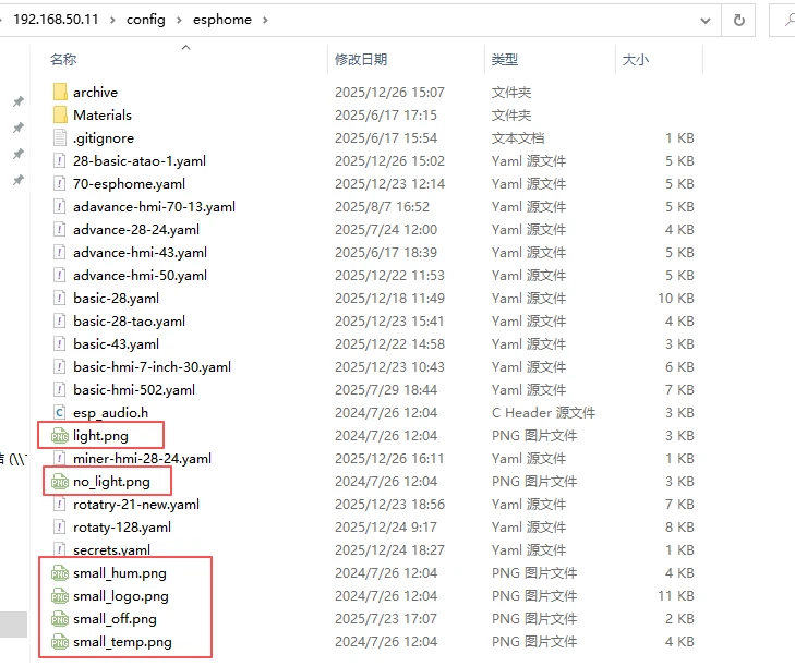 You can see these materials on the screen. We need to use them on the ESPHome platform, so we need to upload these materials to the ESPHome platform.