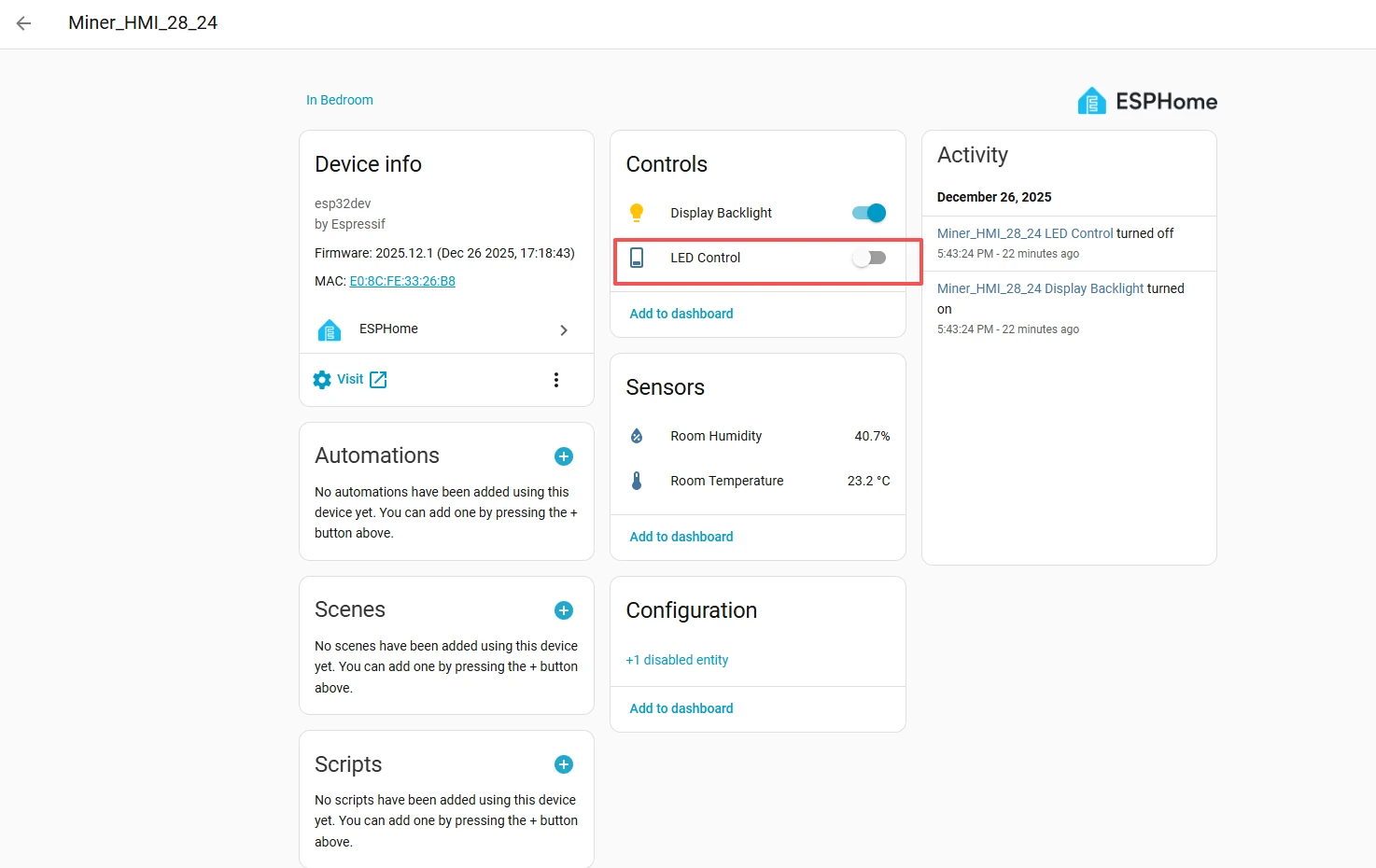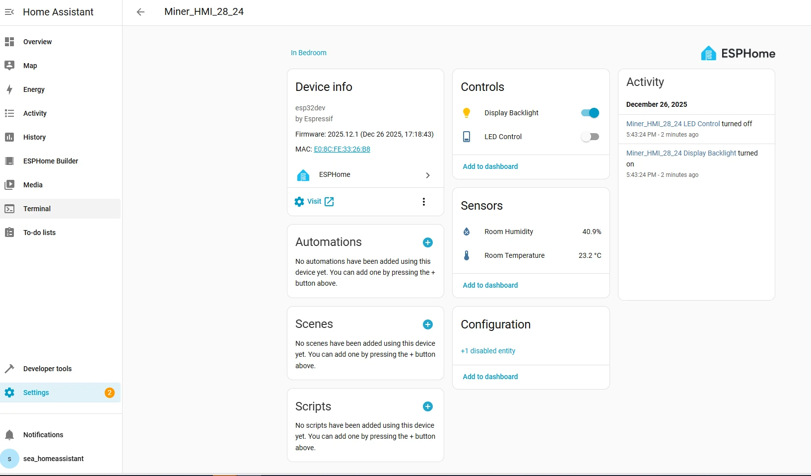 Back to our ESPHome interface.