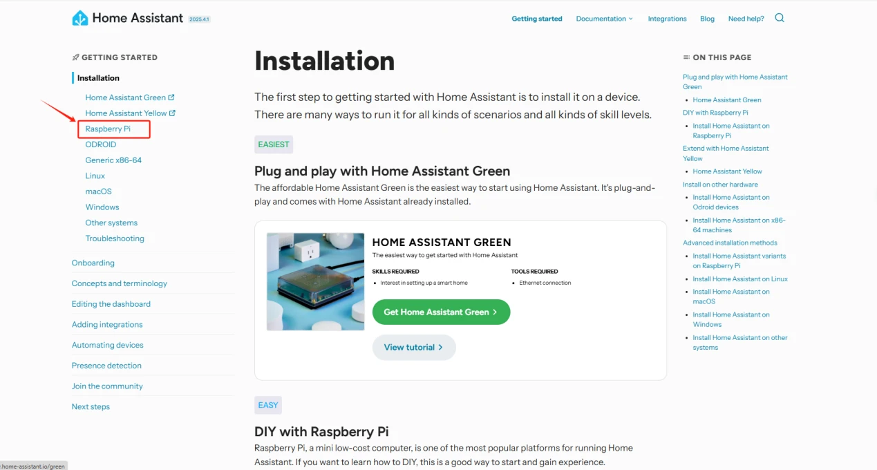 Select a Raspberry Pi and install the Home Assistant system according to this installation guide.