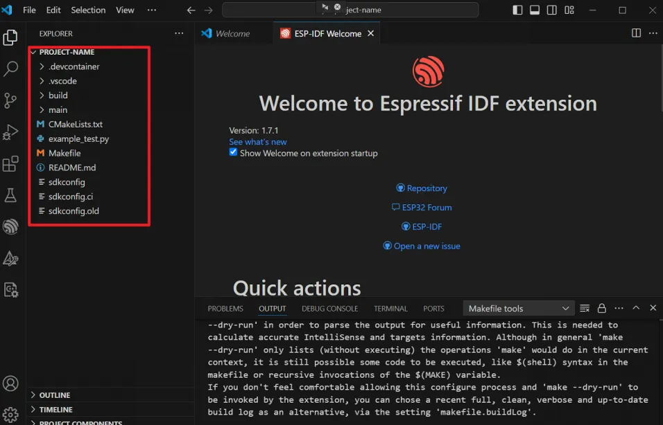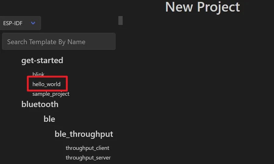Or click the ESP-IDF icon, click 'COMMANDS', then click 'New Project Wizard'.