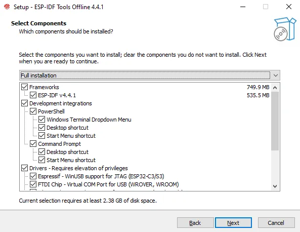Double-click the esp-idf-tools-setup-offline file to install ESP-IDF.