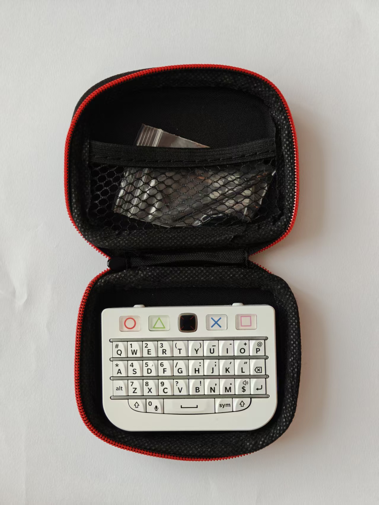 This mini Keyboard uses the original keycap from Q10 with Blackberry 9900 trackpad and powered by the NRF52840 Microcontroller and operates under ZMK Firmware with extra custom driver.