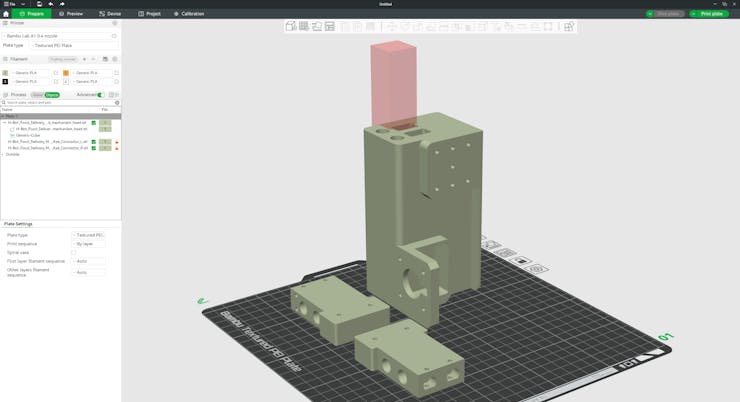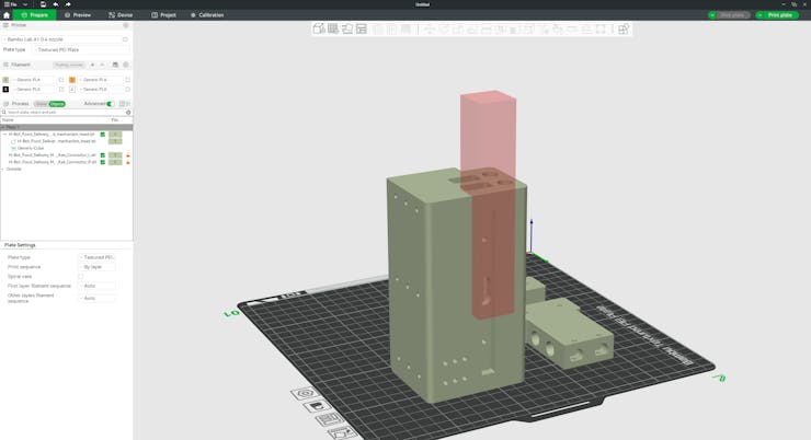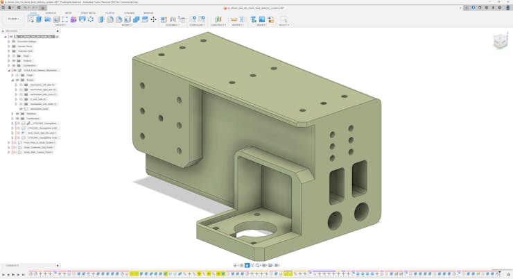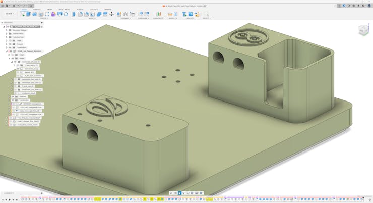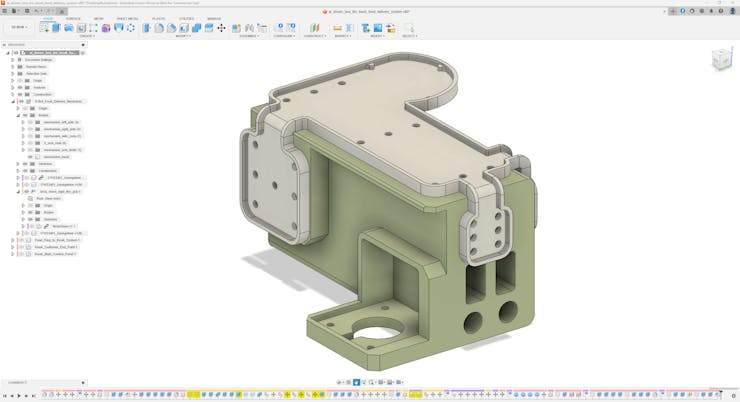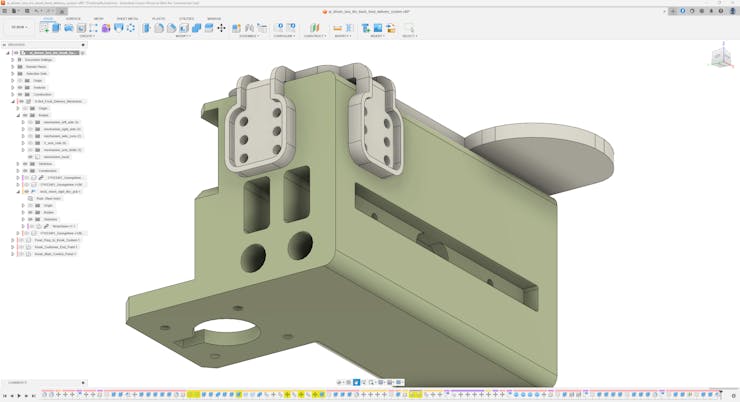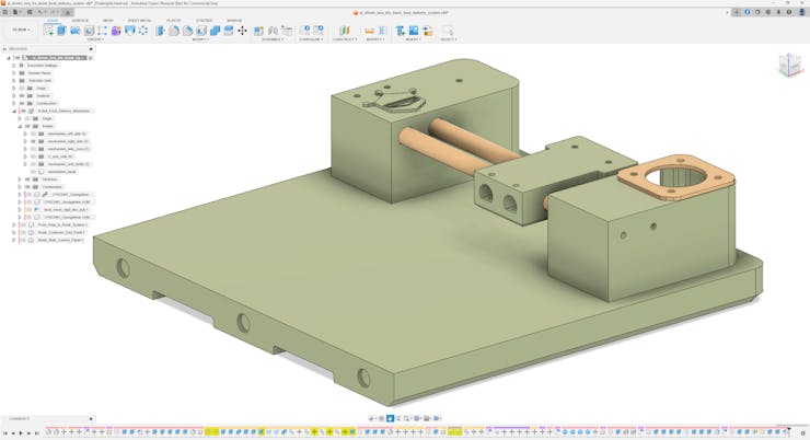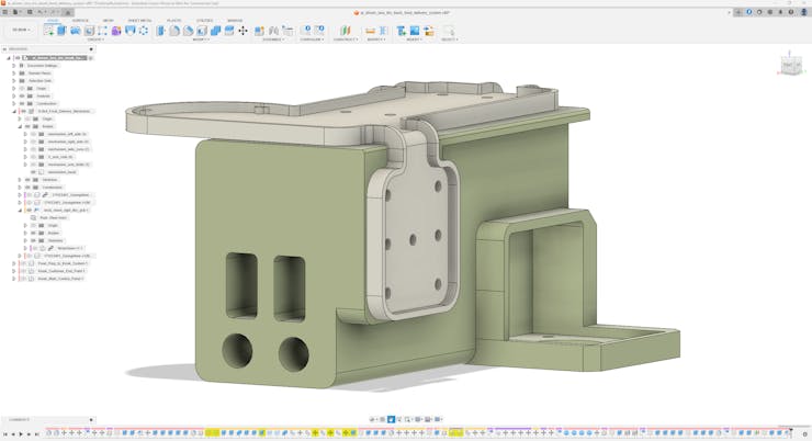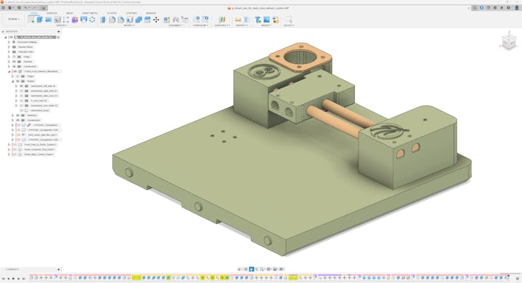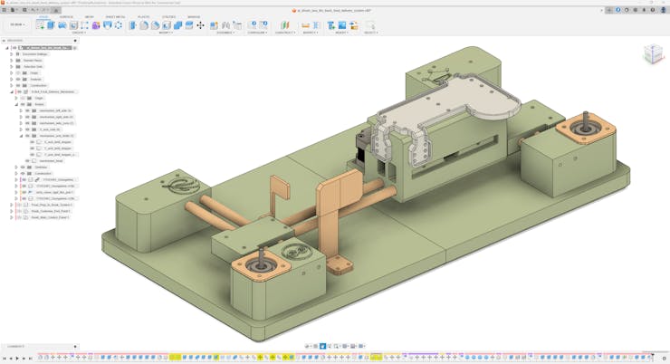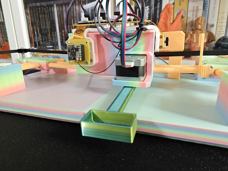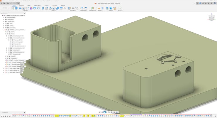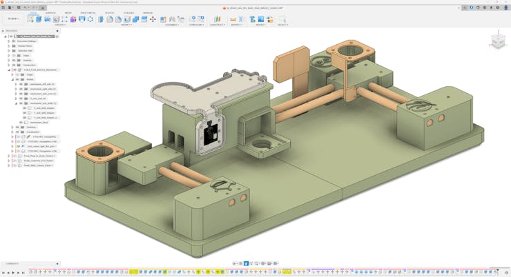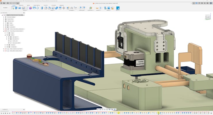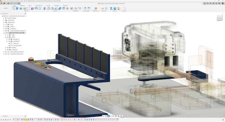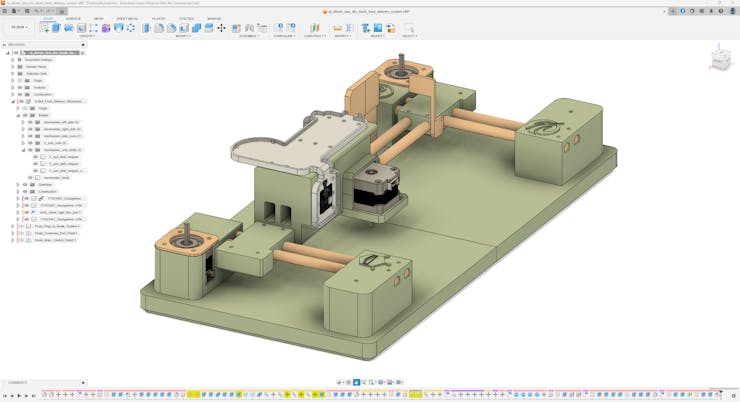 ✅ Designing assembly and mechanical parts for the automatic food delivery system inspired by the H-Bot kinematic structure.