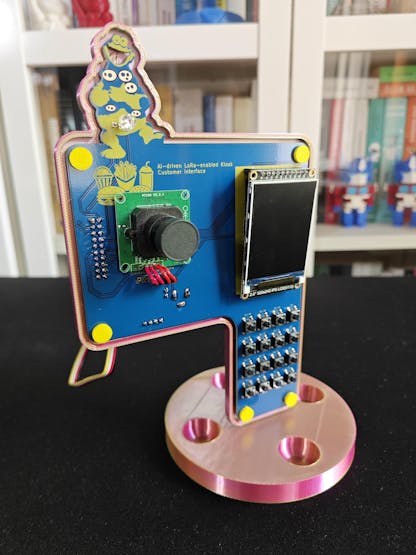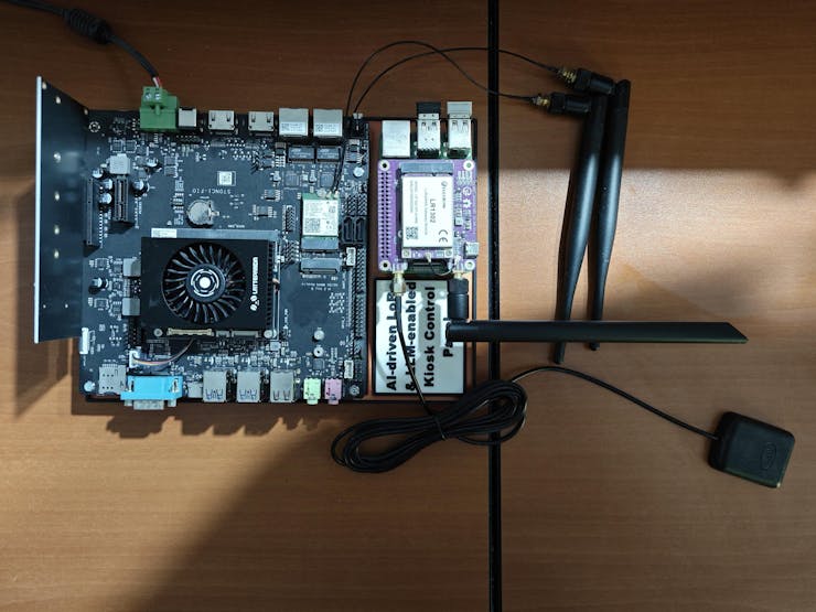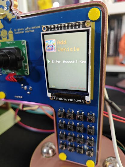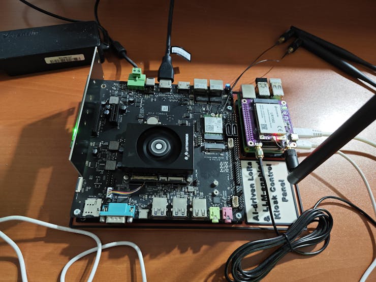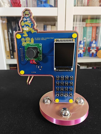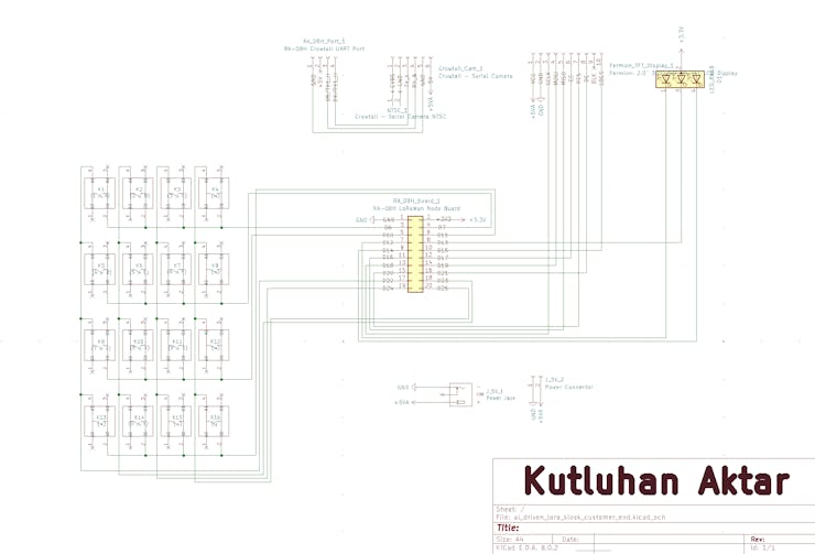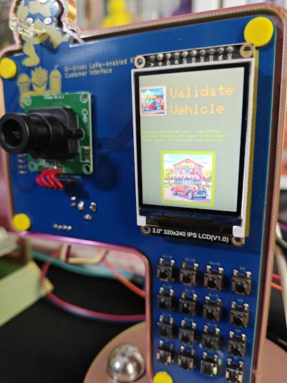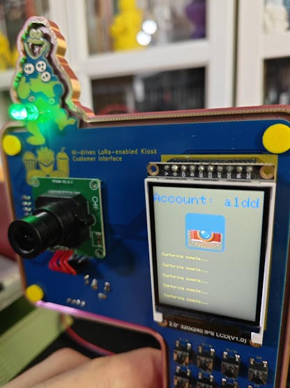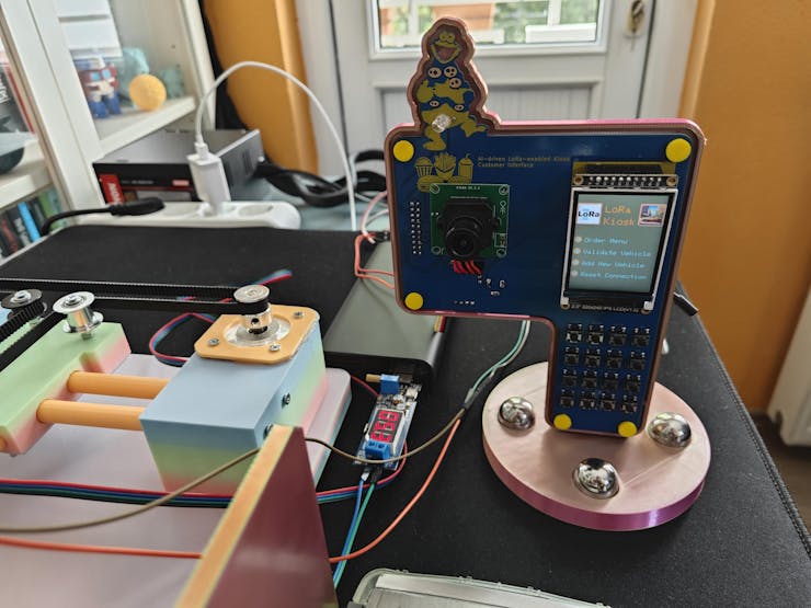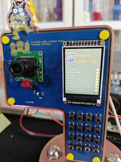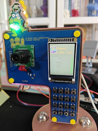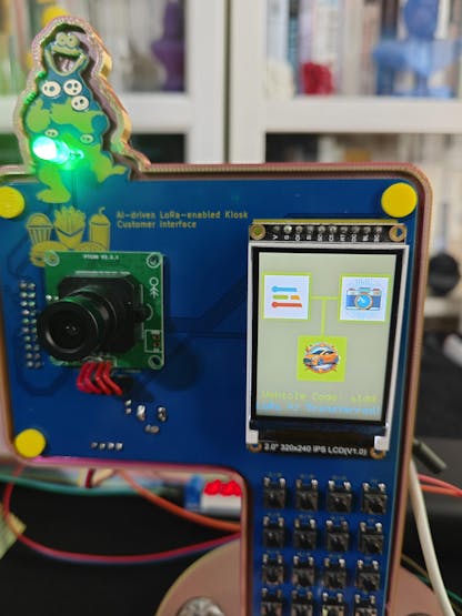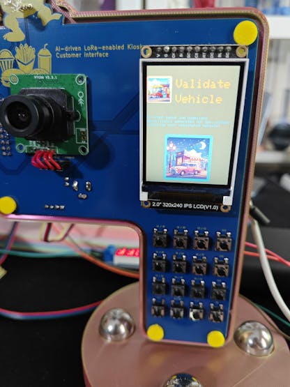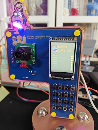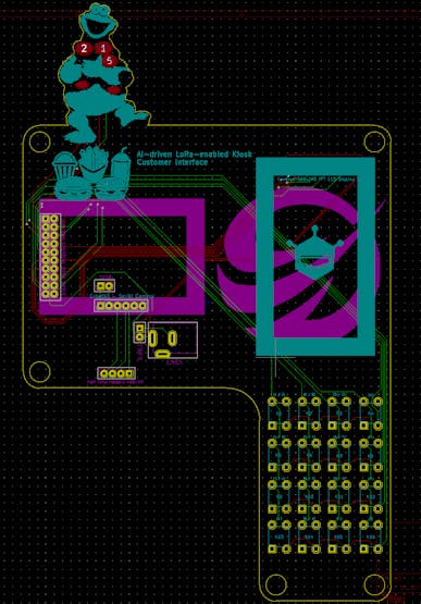 Then, I started to develop the kiosk customer endpoint, which handles customer-to-kiosk interactions and AI-based vehicle identification. As discussed, I decided to utilize LoRaWAN to establish the workflow between the endpoint and the restaurant web application. Thus, I based the customer endpoint design on the budget-friendly and feature-rich RA-08H LoRaWAN node board. Of course, the kiosk customer endpoint would not be complete without a dedicated LoRaWAN gateway transferring data packets to the web application with optimized configurations. Thus, I decided to utilize the LR1302 LoRaWAN gateway module and its Raspberry Pi-compatible hat. Also, I designed a unique PCB for the kiosk customer endpoint to build a compact and user-friendly device.