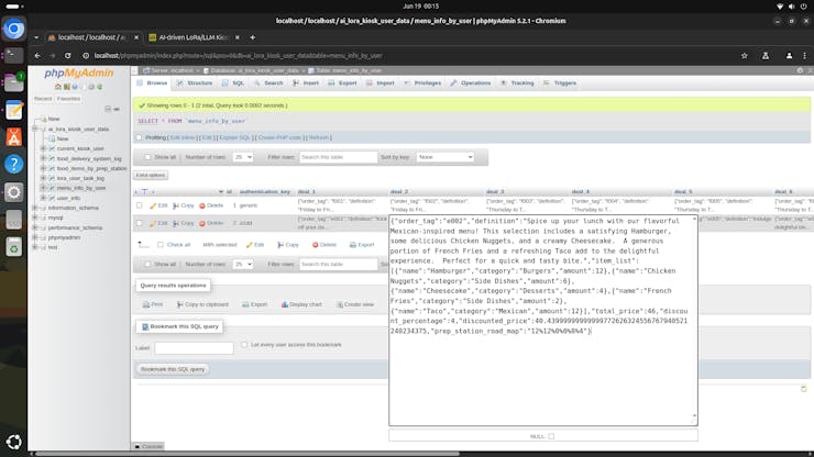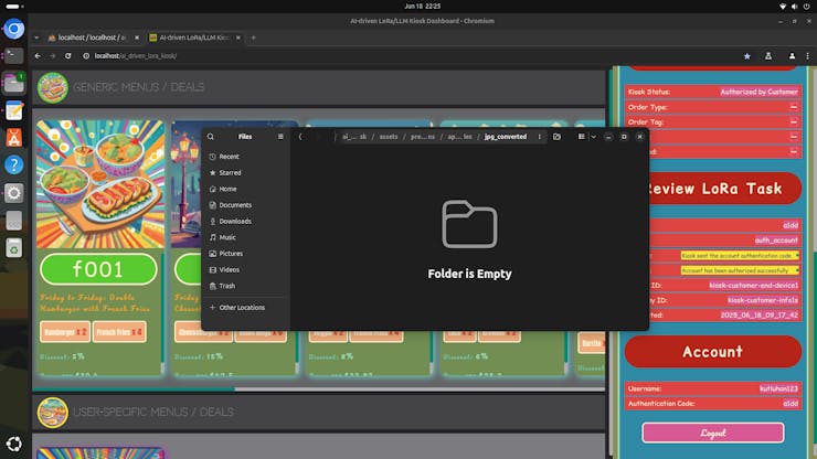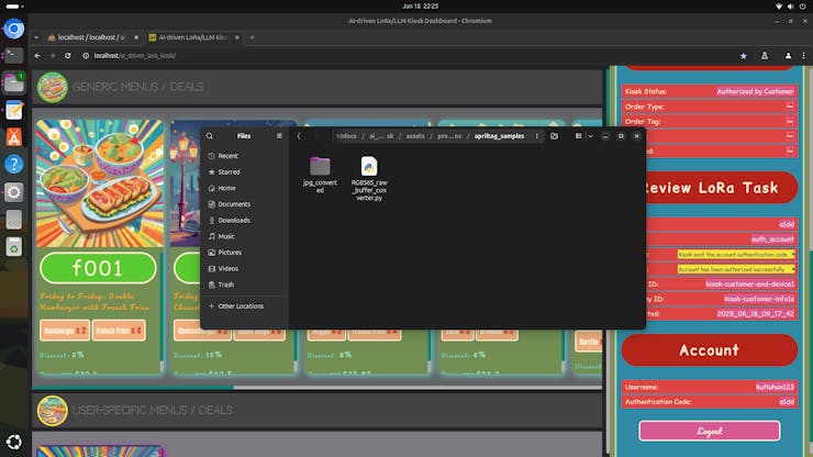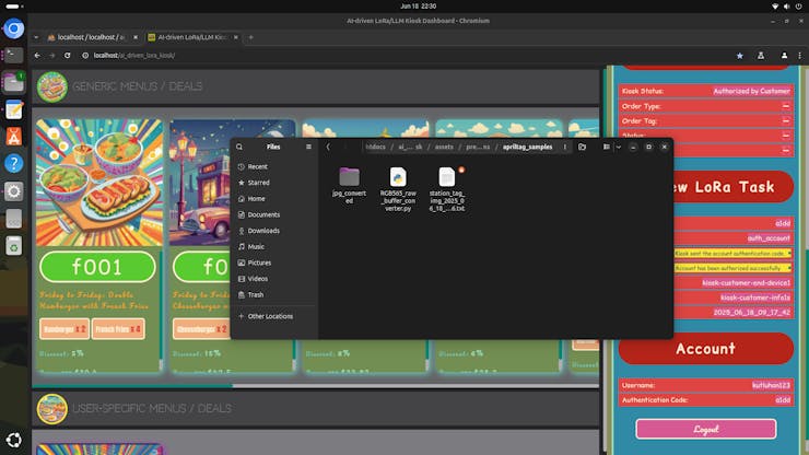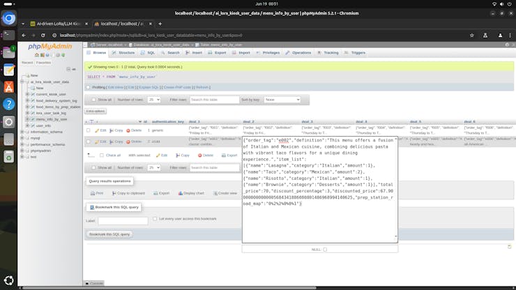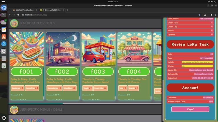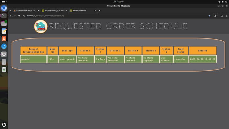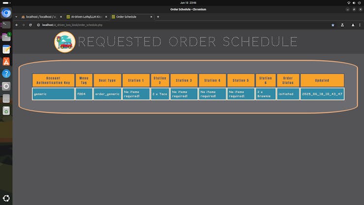 🍔 🚗 🛎️ 📶 After obtaining the LoRa-transmitted order tag from the kiosk customer endpoint via the PHP-MQTT client, the restaurant web application processes the order tag to initiate the menu preparation process.