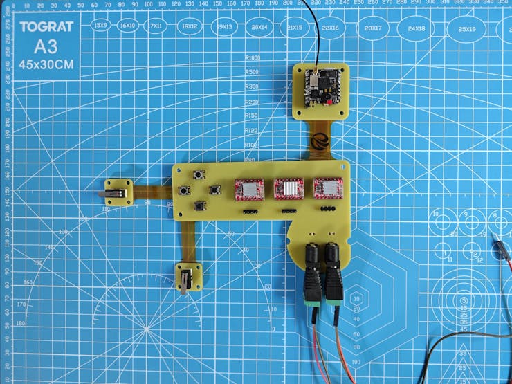 Since I wanted to make the food delivery system capable of identifying individual food prep stations via object detection, I decided to design unique AprilTag signs for each prep station. Thus, I decided to utilize Arduino Nicla Vision as the processor of my food delivery system, which is an easy-to-use and scalable development board with a built-in camera. Since I designed an H-Bot-inspired mechanism, a regular (Rigid) PCB would not allow me to develop the features I envisioned for the gantry head serving the collected food items. Hence, I decided to design a unique Flex PCB for the food delivery system, which would include stiffeners to enhance mechanical strength.